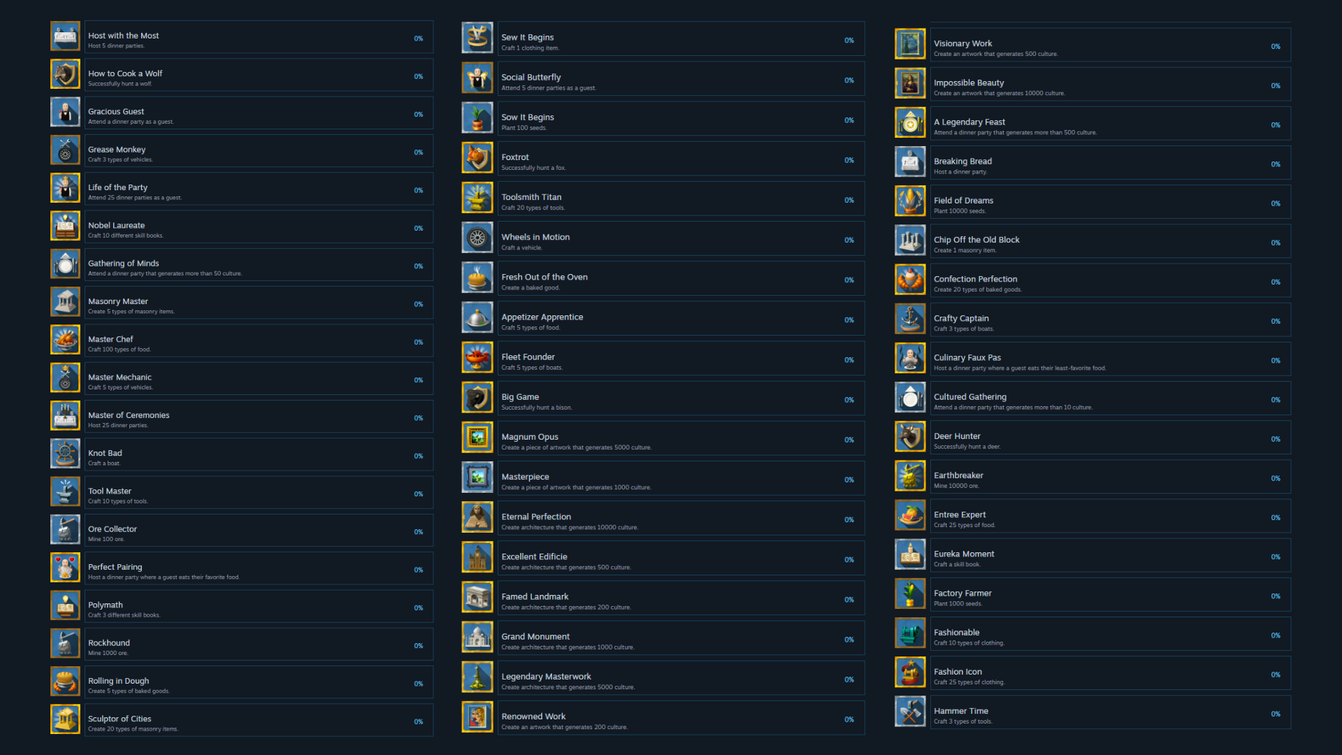 Added: "SettlementCountMultiplier" config variable, determining the bonus multiplier per amount of different settlements being represented by citizens participating in the dinner party.