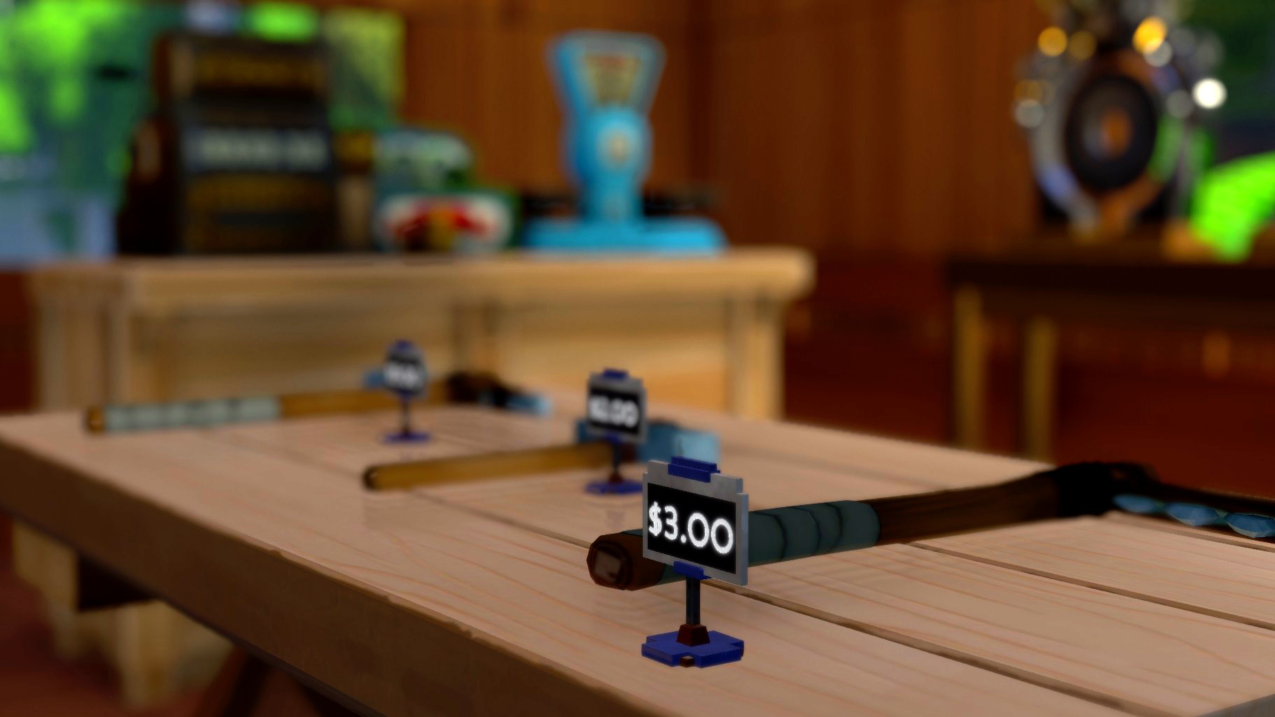 The ability to place things on surfaces also allows you to sell items directly from them, instead of having to put them into a store. Simply place what you want to sell on a table and set a price on the table UI - a price sign will appear next to the placed object and other players will be able to directly buy it from the table.